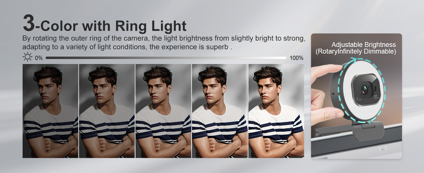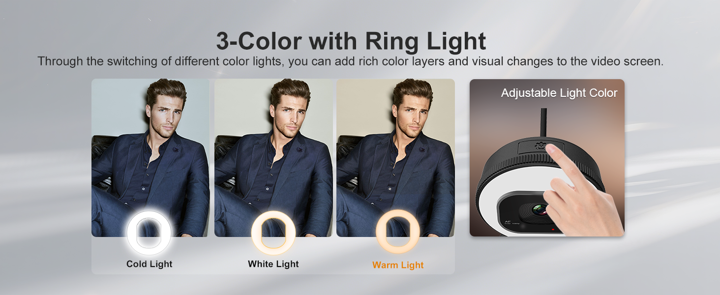 | LED Lighting | Rotating infinite brightness adjustment, touch-controlled three-color light source selection, automatic fill light according to the chat environment, making the chat more cozy |